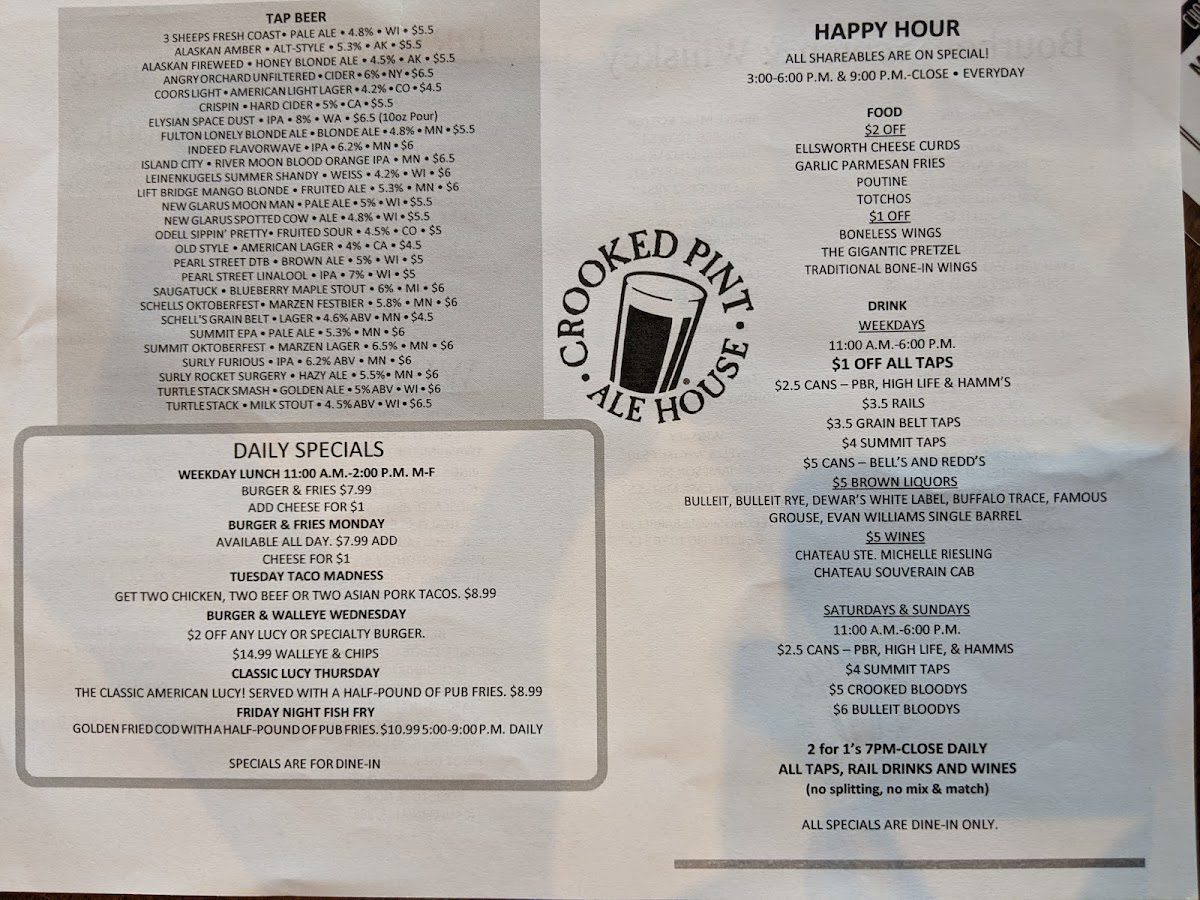 Welcome to Crooked Pint Ale House - Onalaska, a vibrant spot nestled in the heart of Onalaska, WI. Known for its welcoming atmosphere, this sports bar and restaurant strikes the perfect balance between lively and cozy dining. The menu boasts a delightful selection of hearty pub fare that will tantalize your taste buds.